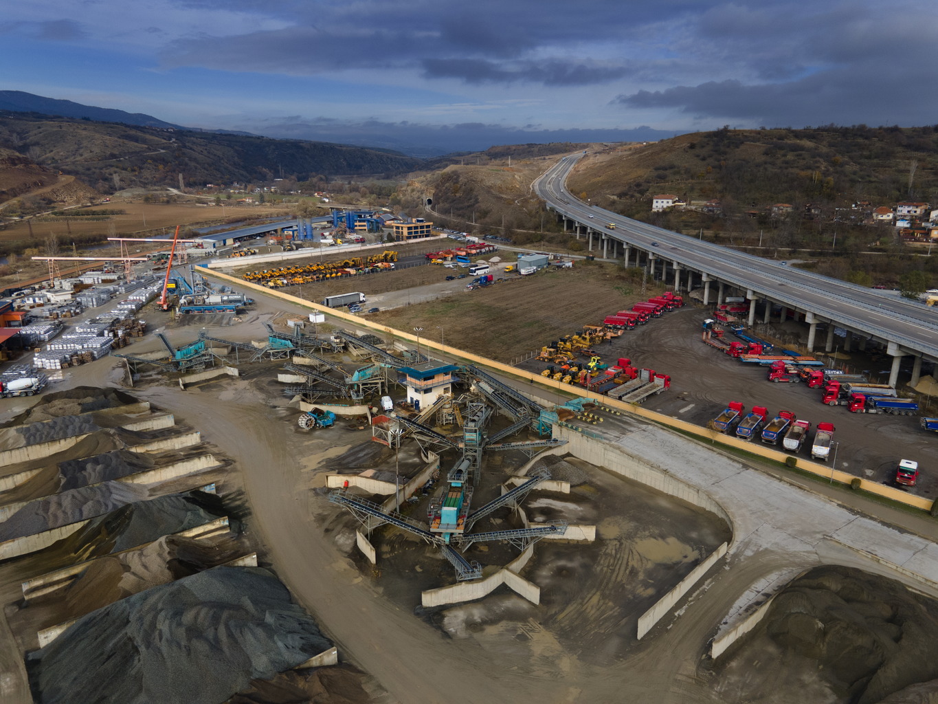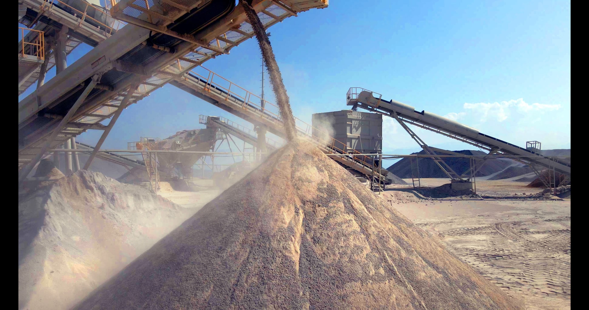 Powerscreen, Бело поле, капацитет 500 т/час, произвежда едновременно 19 вида фракции. Разполага с 8 трошачни инсталации за първична и вторична обработка