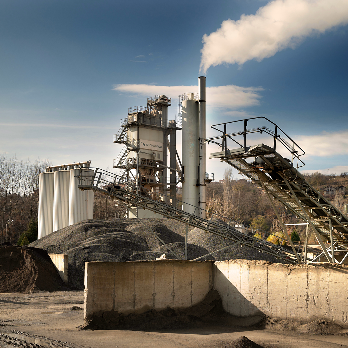Производствената база в с. Бело поле край Благоевград е основна логистична точка на компанията. Тя събира на едно място Завод за производство на бетонови елементи, съоръженията за производство на инертни материали, бетонови и алфалтови смеси, лаборатория, административна сграда и транспортно-технически център.