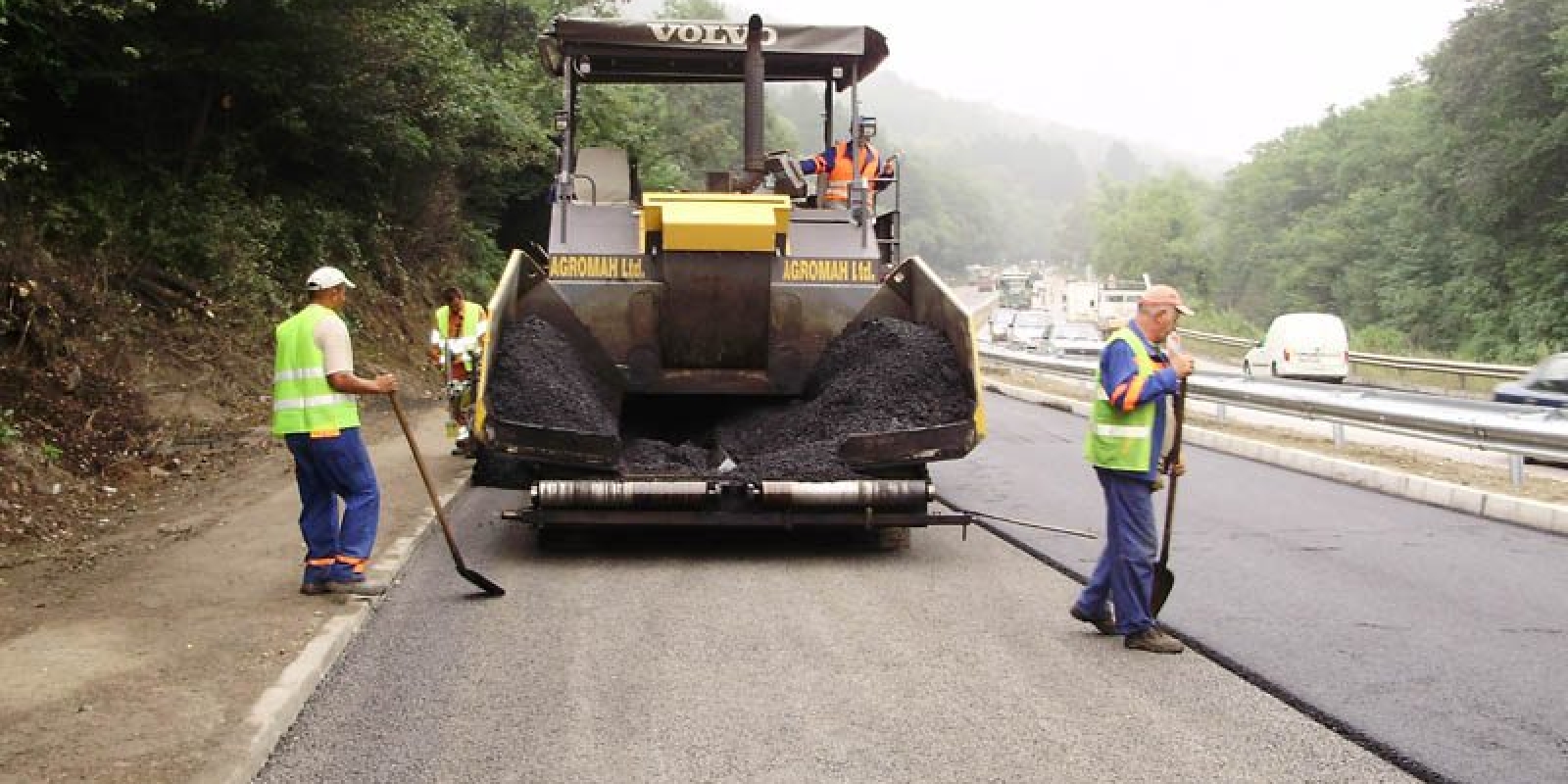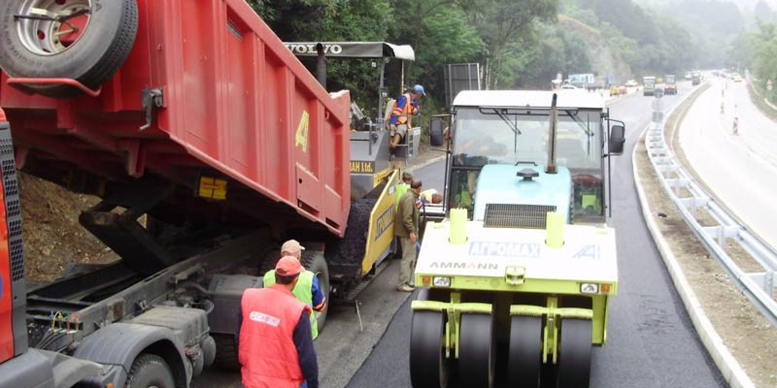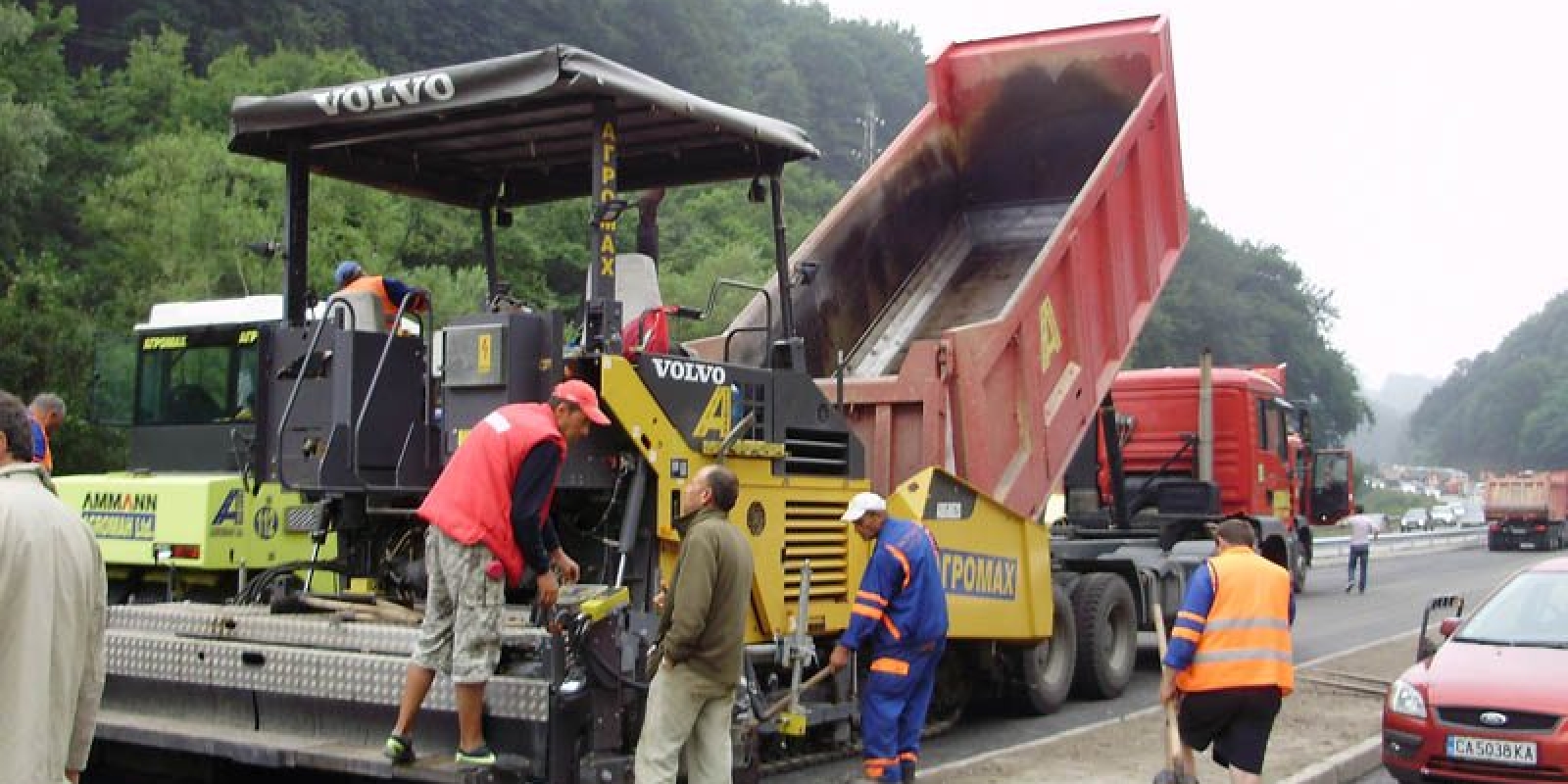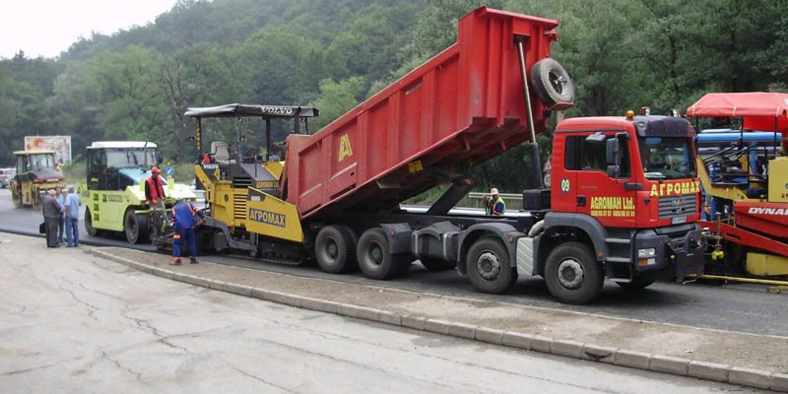 - Доставка и полагане на плътна и неплътна асфалтова смес и изкърпване на пътна настилка;