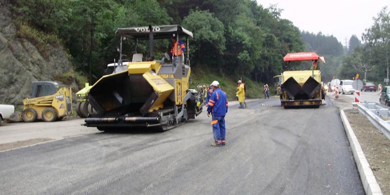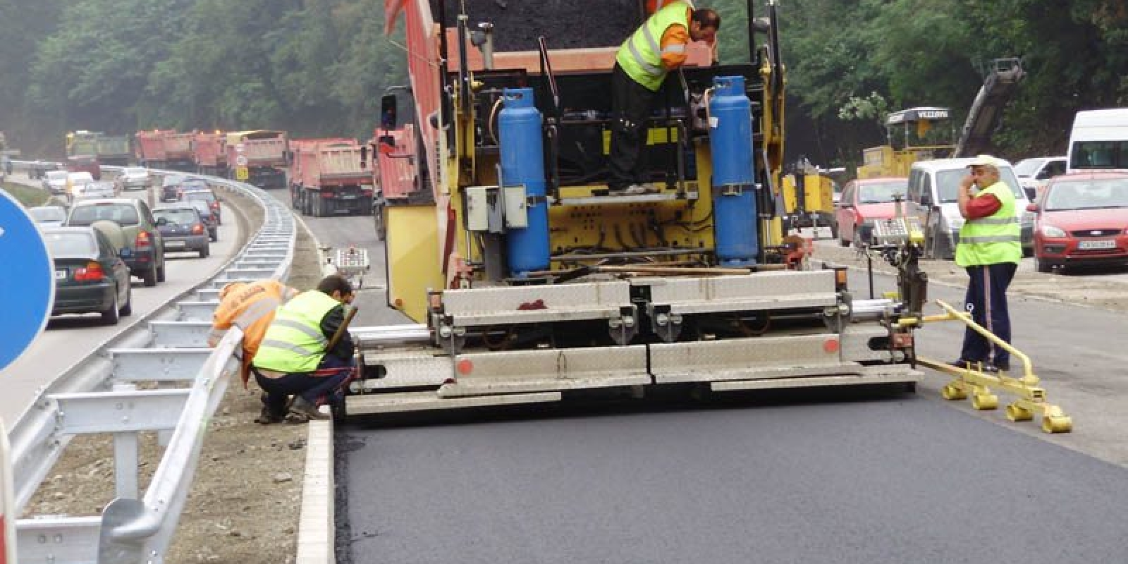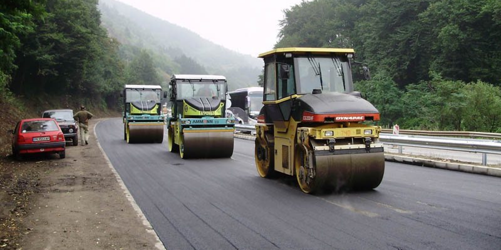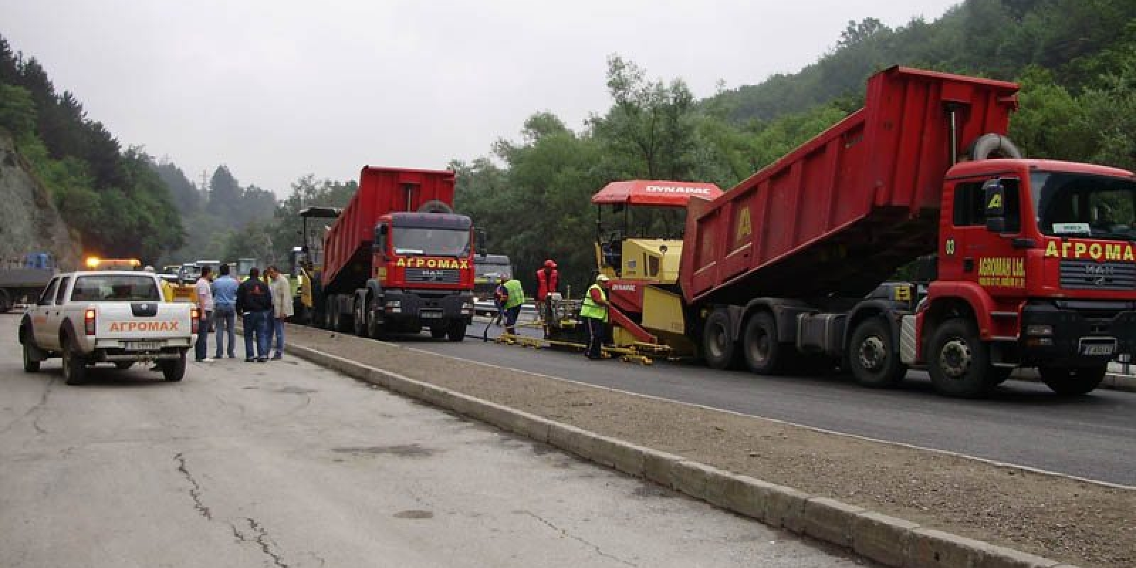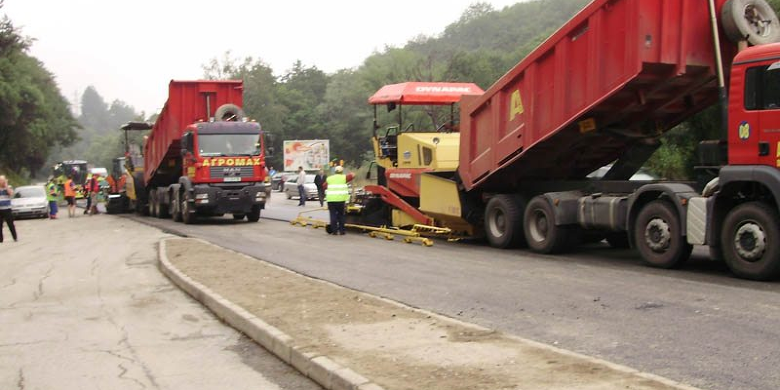 - Доставка и полагане на плътна и неплътна асфалтова смес и изкърпване на пътна настилка;