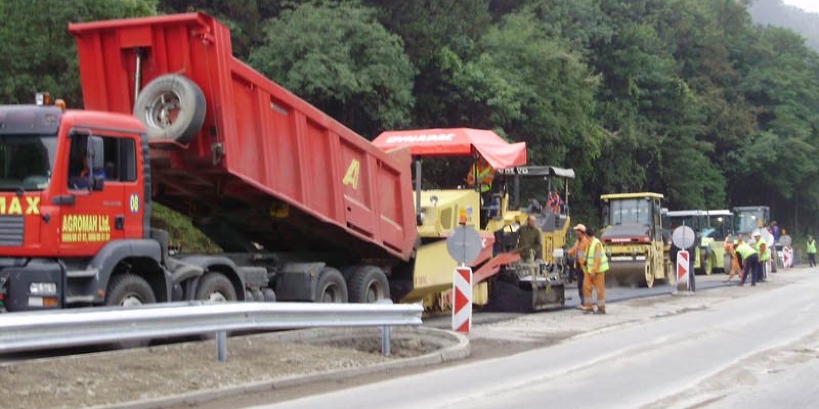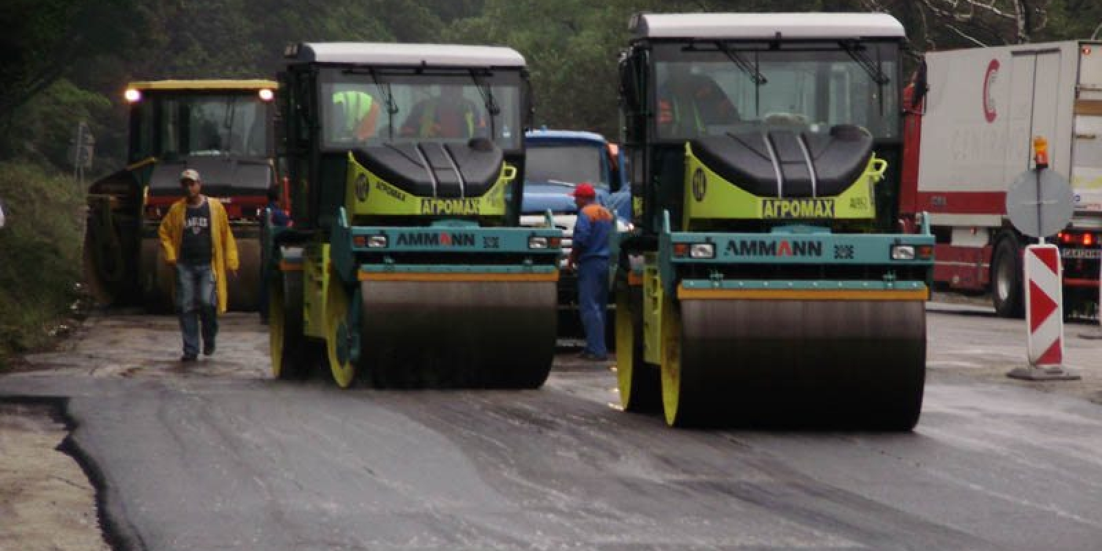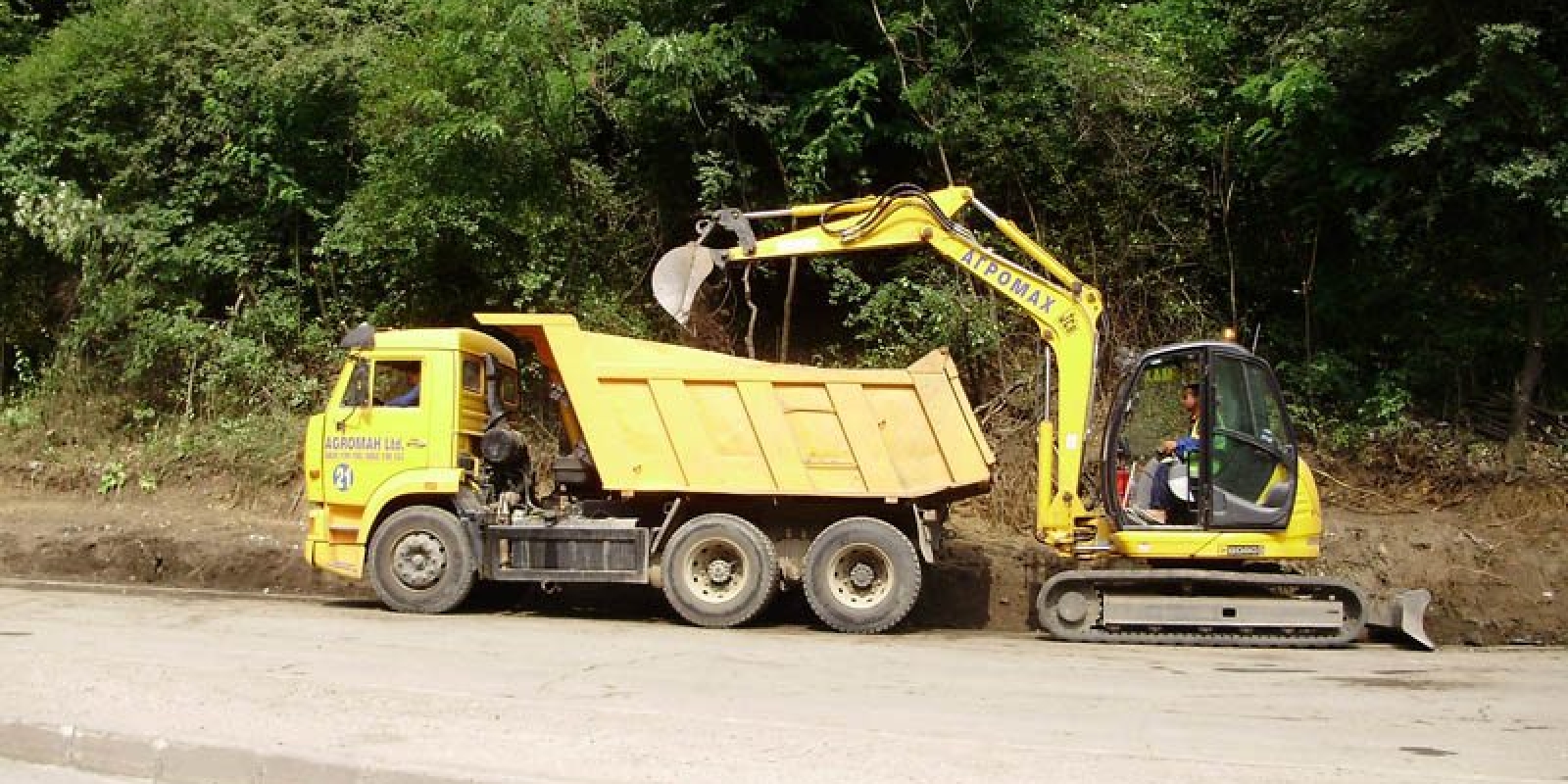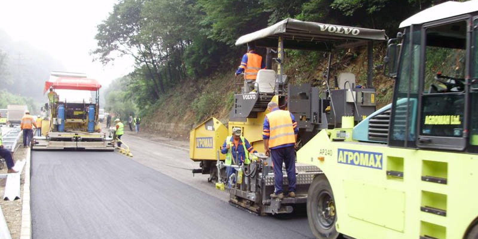 - Доставка и полагане на плътна и неплътна асфалтова смес и изкърпване на пътна настилка;